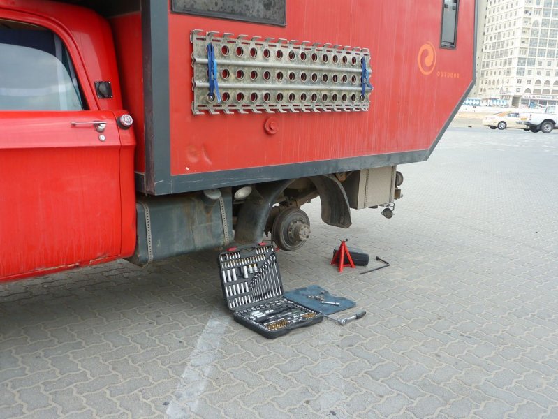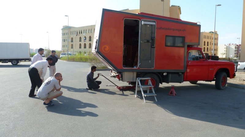 Da sind wir wieder J Weit gekommen sind wir aber noch nicht. Geniessen immer noch das wunderschöne Dubai. Am Montag waren wir wie gesagt nochmals beim Mechaniker um unseren Rahmen nochmals an der Bruchstelle zu schweissen. Hat alles perfekt geklappt, sogar die Kardangelenk wurde wieder richtig verschraubt, jetzt können wir wieder vibrationsfrei rumdüsen. Es war schon sehr nervig und anstrengend, das ewige gebrumme und geschüttel, doch jetzt läuft der Dodge ruhiger als je zuvor. 2 Stunden hat der ganze Spass gedauert und nur CHF 60.— unser Portemonnaie erleichtert.