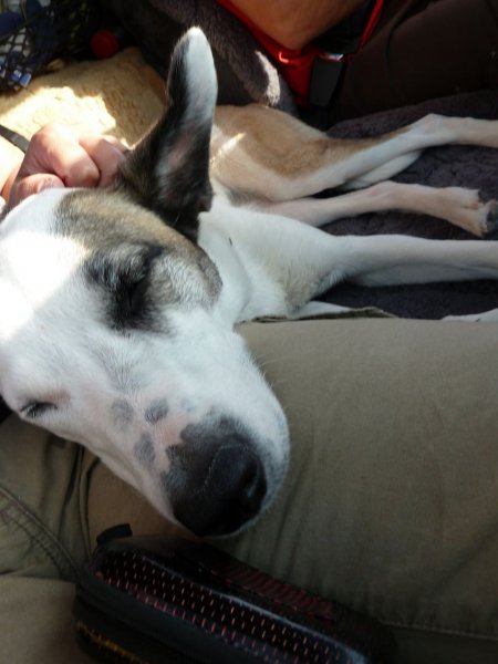 Joe und seine Frau hatten wie immer ihren Hund dabei. Einen kleinen weissen unkastrierten Rüden namens Chico. Zum Glück wusste er nicht viel mit unserer läufigen Alia anzufangen, so konnten wir schlimmeres verhindern. Die beiden verstanden sich aber sehr gut und zu einem Gerammel ist es Gott sei Dank nie gekommen 😉
