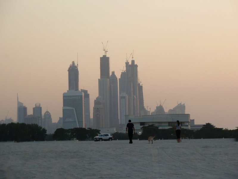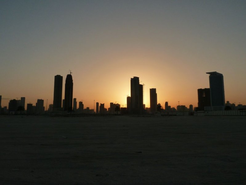Wir erblicken die ersten Hochhäuser und Baustellen. Alles ist sehr sauber, Porsche und Co flitzen durch die Strassen. Das schönste für uns: Keiner beachtet uns, wir können mitten in der Stadt anhalten, mit Alia am aufgeschütteten künstlichen Strand spazieren gehen…kein Schwein interessiertes. Wenige Menschen befinden sich auf der Strasse, es scheinen alle in Ihren Autos rumzudüsen oder im klimatisierten Büros zu sitzen…das gefällt uns J