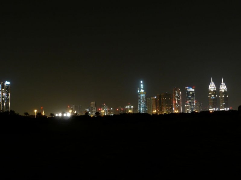 Keine 500 Meter entfernt lassen wir uns am Strand nieder und geniessen die Privatsphäre und die fernen Lichter von Dubai, die im Mondlicht glitzern.