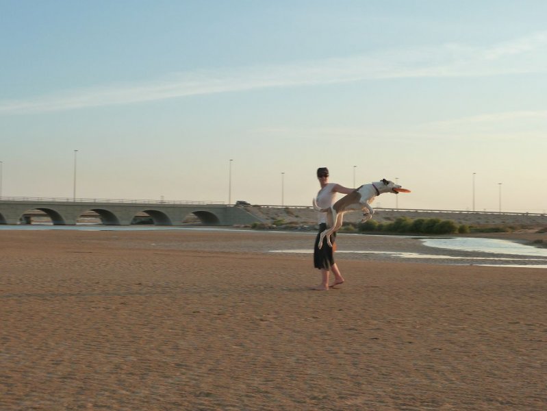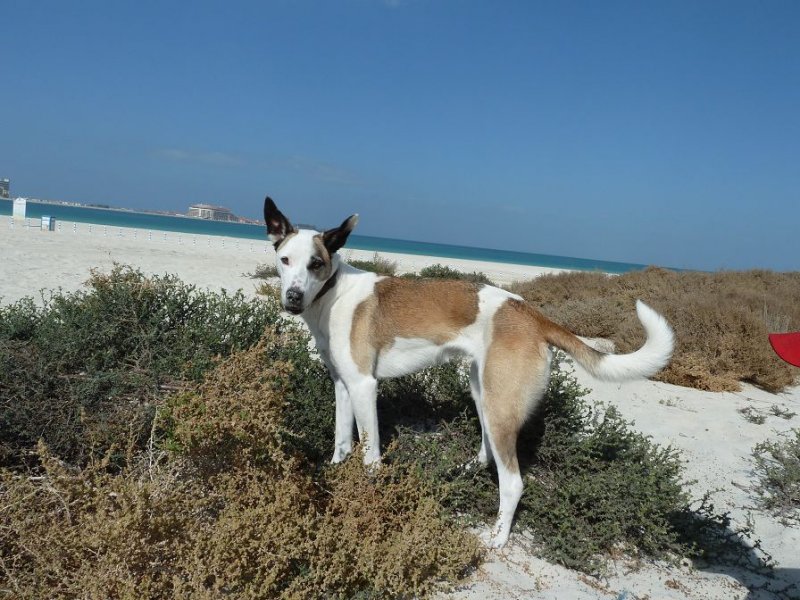 Alia hat ihre halbjährliche Läufigkeit erreicht. Wir sind froh, dass es hier in Dubai keine wilden Hunde gibt, somit ist das frei herumlaufen lassen kein Problem und es ist kein Hindernis für uns.