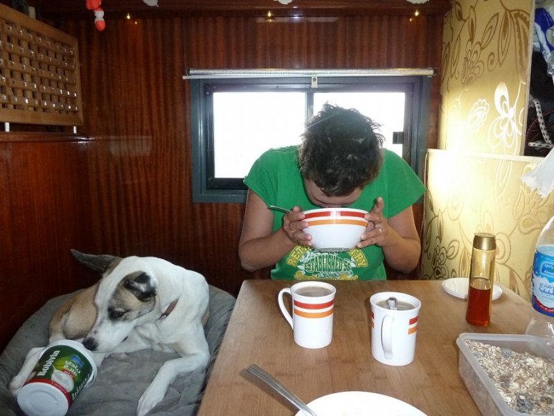 4 Stunden später dürfen wir dann endlich den Hafen verlassen. Und tataaaaaaaaaa, ich schmeisse Kopftuch und mein Gewand in den Ecken…Wow, was für eine Wohltat, endlich wieder befreit in der Öffentlichkeit sein…herrlich, wusste gar nicht wie schön das ist. Einziger Nachteil: Strubbelfrisur wieder richten und angesammelte Speckröllchen unter dem T-Shirt verstecken. FDH ist angesagt. J