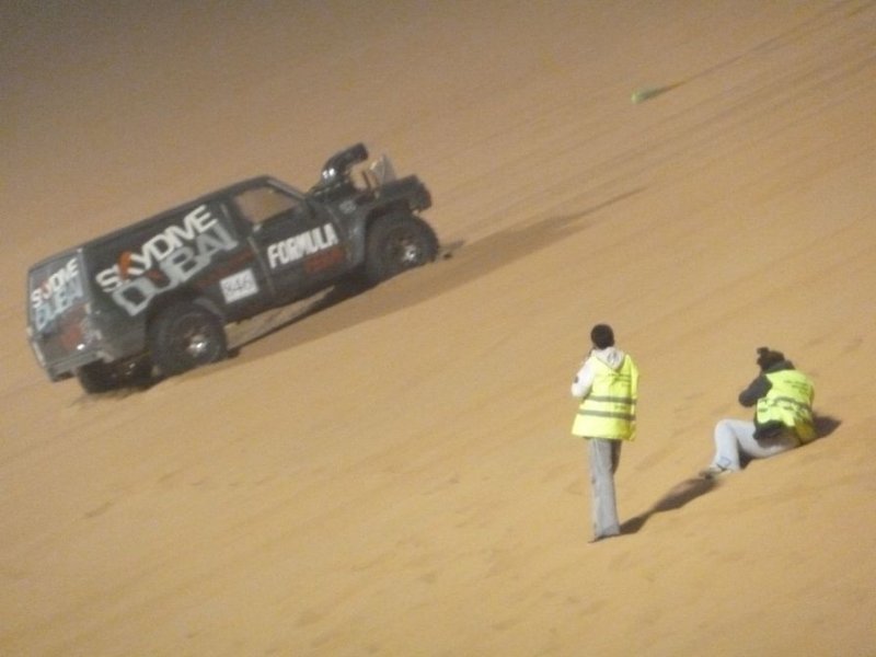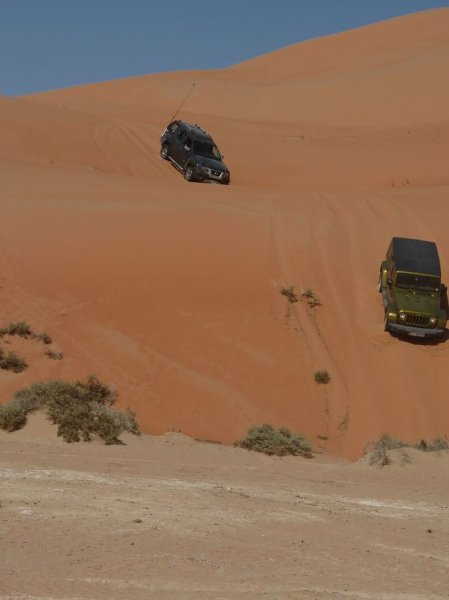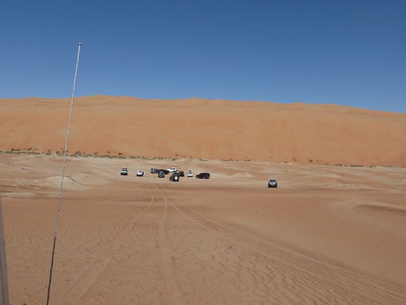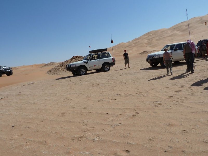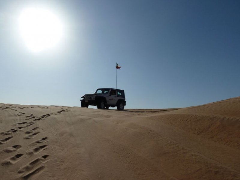 Joe, seine Frau und Eslam hielten es nicht lange auf ihren Campingstühlen aus und mussten raus in die Dünen. Ich hatte die Gelegenheit und durfte mitfahren. Thomas war sich der Sache noch nicht ganz sicher, da er nicht so ein guter Beifahrer ist und es ihm gerne mal übel wird, hütet er Alia im Camp mit dem Rest der Truppe.