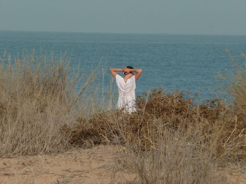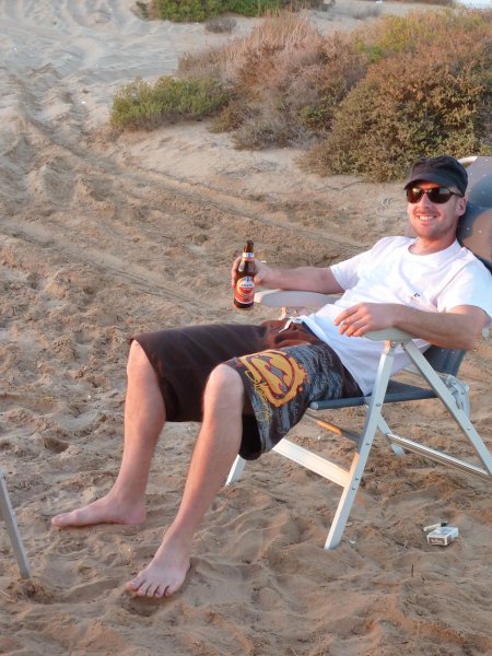 Wir decken uns ein und suchen uns einen Platz zum Anstossen. Heute meint es Allah gut mit uns, nicht weit vom Laden finden wir einen wunderschönen, kilometerlangen einsamer Strand.. Wir müssen nur etwas durch die Sanddünen fahren. Jetzt ist alles egal, Thomas gibt gas und schafft es auch.. Wir stehen am romantischen Strand, trinken ein Bier und geniessen das rauschen des Meeres und die Einsamkeit. Endlich Ferien….