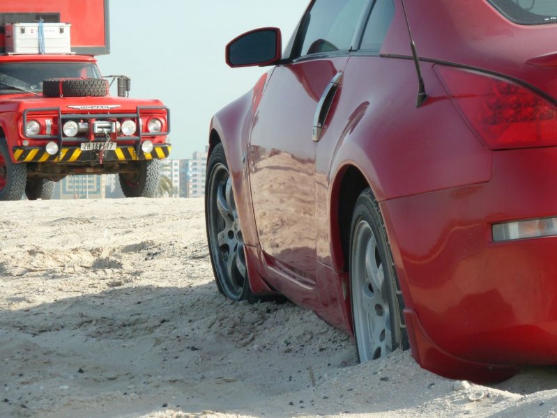 Trotz nur vorderantriebs trauten wir uns auf sandiges Gelände an unseren bereits gewordenen Heimatstrand mitten in Dubai.