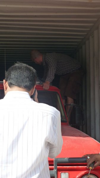 Na dann, heisst es die Box muss runter oder wir müssen an einem anderen Termin das Auto in einem Open Top Container verschiffen.