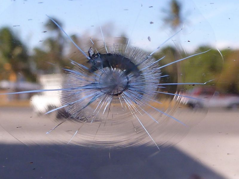 Und dann schlägt Freitag der 13. doch noch zu 🙁 Wie schon in Amerika, erwischen wir vom Gegenverkehr einen Stein mitten auf die Frontscheibe. Nur diesmal etwas heftiger, genau auf meiner Seite im unteren Drittel der Scheibe. Was für ein Ärger!! Schlimmer wäre nur noch, wenn wir damals auf dem Schrottplatz in den USA eine Ersatzscheibe gekauft und eingebaut hätten…