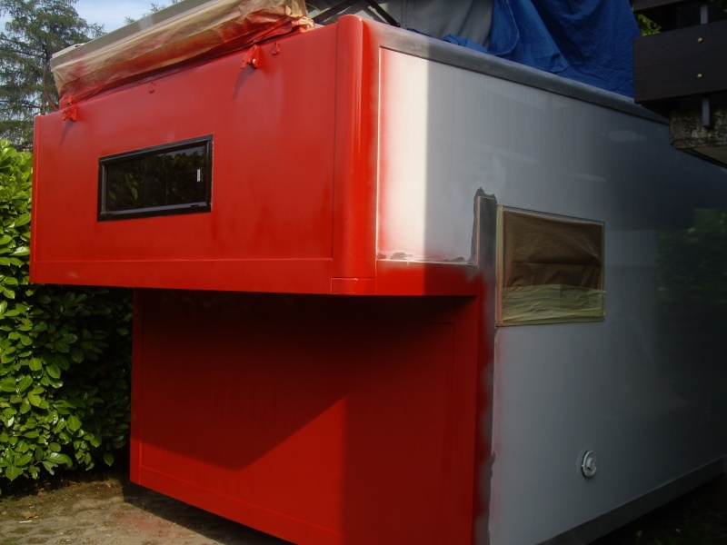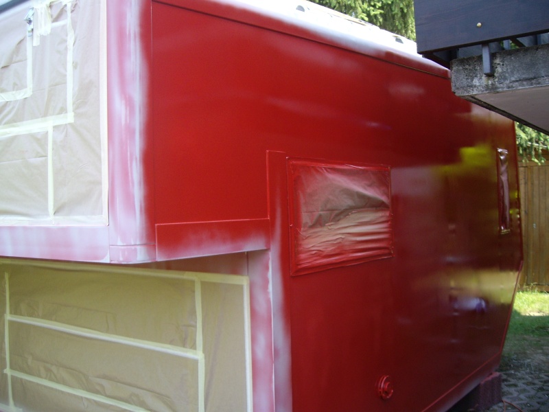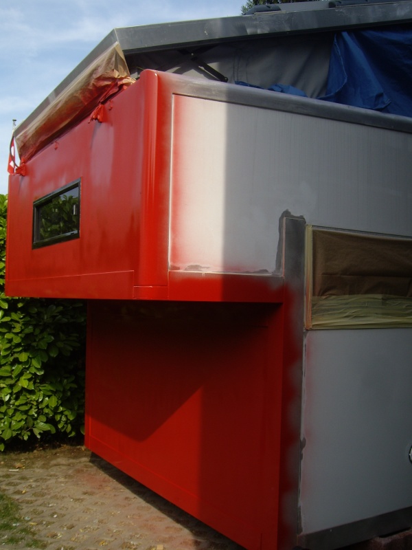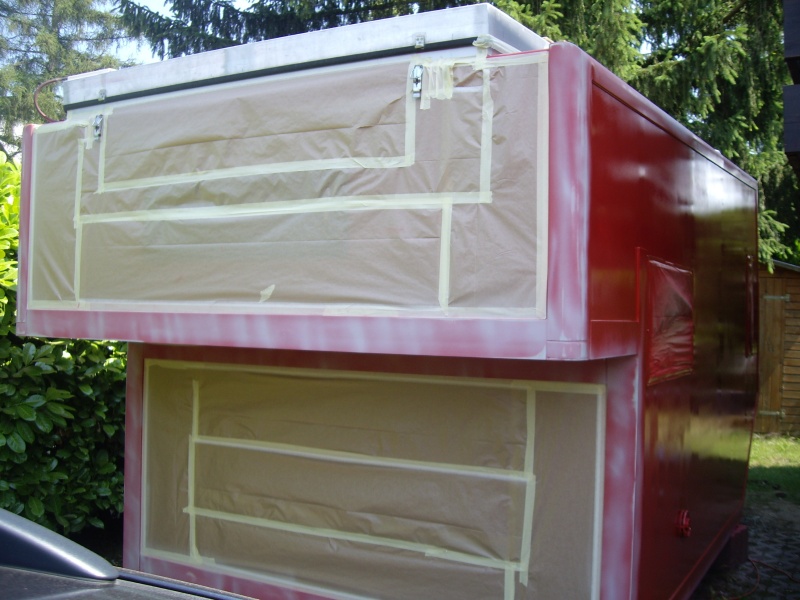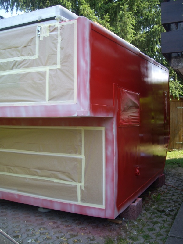 Endlich spielt das Wetter mit und wir konnten mit der Lackierung der Wohnkabine beginnen.